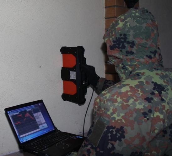 該裝置的操作原理是操作者將天線模塊導(dǎo)向墻壁。 然后即可在計(jì)算機(jī)屏幕上觀察當(dāng)物體在墻后移動(dòng)時(shí)反射信號(hào)的雷達(dá)圖的變化。