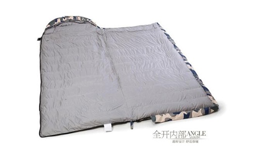 1、立襯式信封式羽絨睡袋,每兩條羽絨睡袋可以拼接成一個(gè)雙人睡袋。