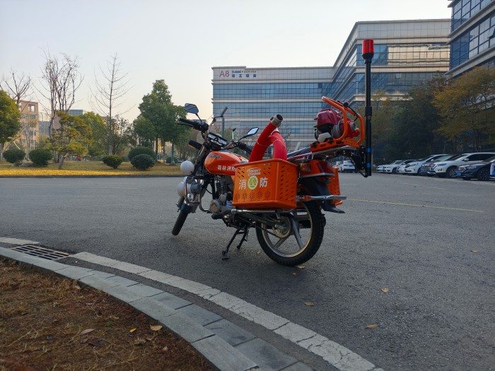 消防巡邏摩托車是在宗申摩托車的基礎上改裝而成,能夠廣泛的應用于森林、城市公路、工廠、學校、社區、醫院等場所,巡邏并可攜帶滅火裝備能迅速的將火災撲滅在初期。
