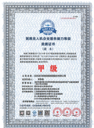 資格類民用無(wú)人機(jī)企業(yè)服務(wù)能力等級(jí)資質(zhì)證書(shū)(甲級(jí))
